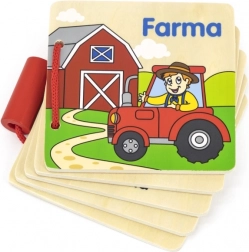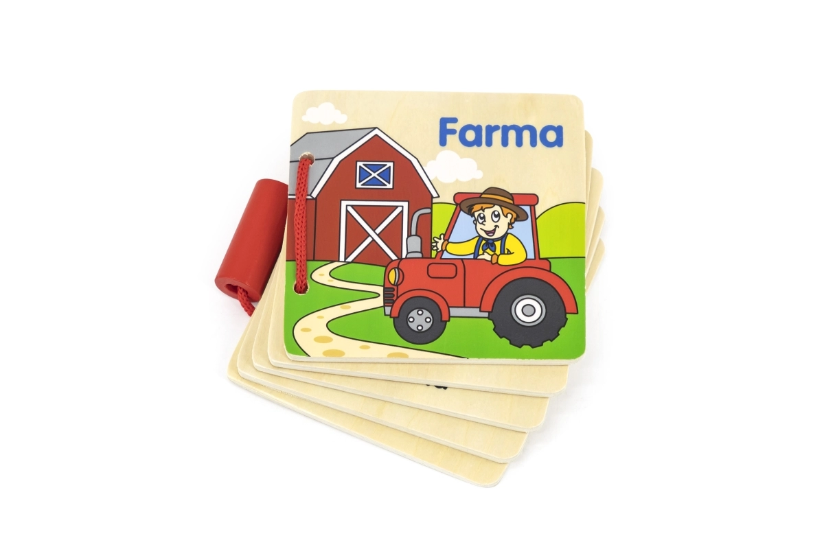 Ez a farm témájú fa lapozó remek eszköz a gyerekek első ismerkedéséhez az állatok világával. A tartós fa lapok élénk illusztrációkkal és magyar feliratokkal fejlesztik a finommotorikát, a szókincset és a koncentrációt.