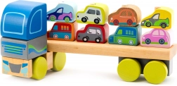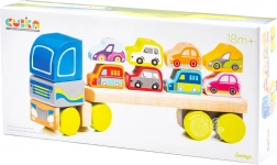 A Cubika bemutat egy egyedi fa kamiont autókkal, amely színeivel és dizájnjával elbűvöli a gyerekeket. A kirakós 12 darabból áll, és lehetővé teszi 8 mini autó szállítását. A kamion hossza 32 cm és az egyes autók körülbelül 5 cm-esek. A játék segíti a következők fejlesztését: