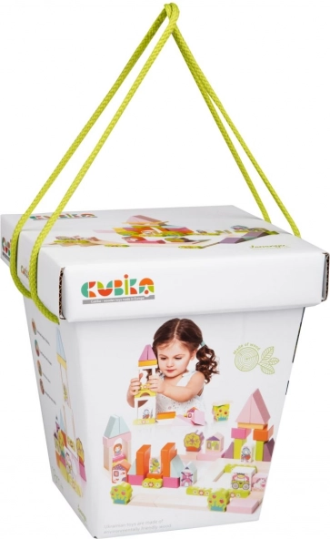 A kockák ökológiailag termesztett juharból és bükből készültek, és biztonságos vízbázisú festékekkel színezettek. Formájában és színében változatos darabok ösztönzik a gyermekek képzelőerejét. Ezenkívül minden ajándékdobozban van csomagolva, a játék utáni könnyű tárolás érdekében.