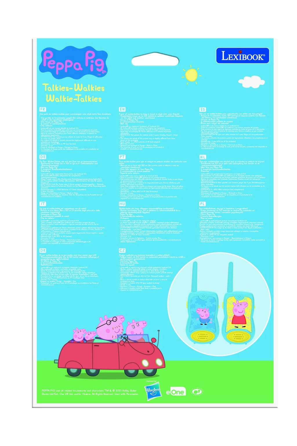 Maradjatok kapcsolatban minden kaland során a Peppa malac mintás gyerek walkie-talkie-kkal. Akár 120 méteres hatótávot kínálnak (terep- és időjárásfüggő), egyszerű kezelést a „TALK” gombbal, ergonomikus kialakítást a kis kezekhez és tiszta digitális hangot. A rugalmas antenna és a levehető övcsipesz miatt ideális kémes játékokhoz és szabadtéri kirándulásokhoz.
