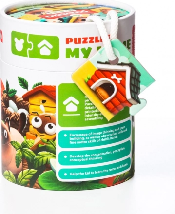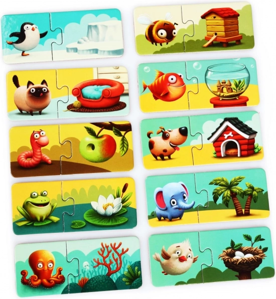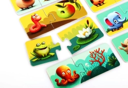 A szórakoztató Puzzlika Az otthonom készlet arra tanítja a gyerekeket, hogy az állatokat összepárosítsák az otthonaikkal. 20 nagy, erős kirakódarabot tartalmaz, amelyek 10 párt alkotnak. Támogatja a logikus gondolkodást, a finommotorika fejlesztését, az állatok és környezetük megismerését, valamint a vizuális észlelést. Tartós, többrétegű kartonból készült fényes felülettel, könnyen tisztítható, és ideális az óvodás korosztálynak.