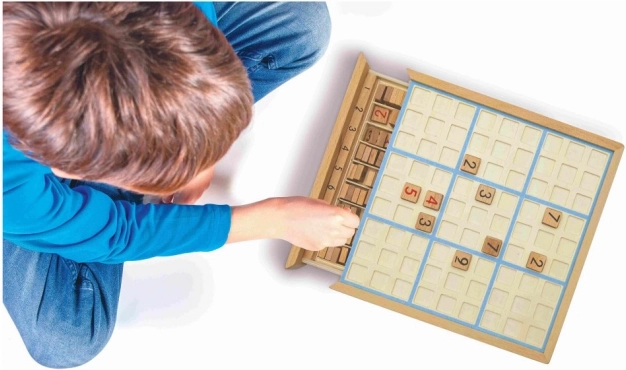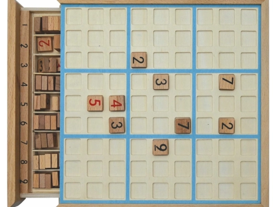 Tartalma: játéktábla fiókkal, 100 Sudoku rácsmező, 81 játékelem.