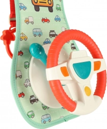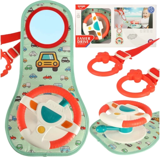 Ez az interaktív autós kormánykerék, melyet úgy terveztek, hogy szórakoztassa gyermekét az utazás során, tartalmaz egy színes panelt kormánykerékkel és egy biztonságos tükörrel. Négy gombot és érzékeli karját kínál, amelyek hangokat és színes fényeket biztosítanak, serkentik a gyermek fantáziáját és érzékeit.
