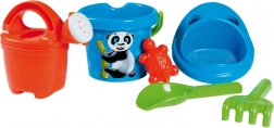 Ez a bájos 6 részes homokozó készlet ANDRONI panda motívummal örömet szerez a kis építőknek a strandon és a homokozóban is. Olaszországban készült minőségi műanyagból, 12 hónapos kortól biztonságos, és mindent tartalmaz, amire szükség van: vödör (Ø 13 cm, magasság 11 cm), 0,5 l-es locsolókanna, szita, lapát, gereblye és teknősbéka alakú formázó.