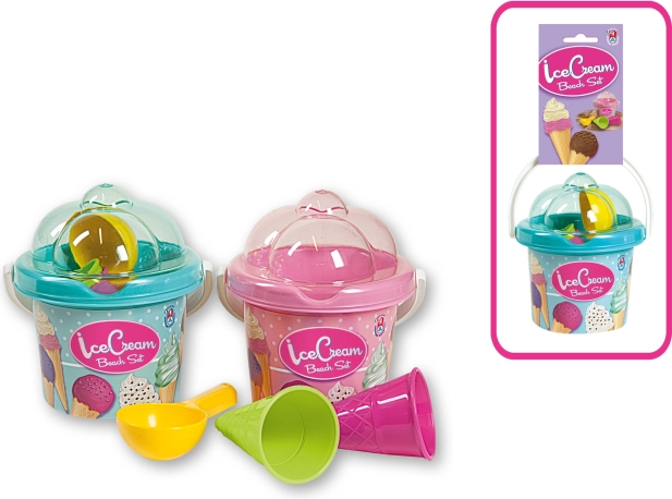Kompakt méreteinek köszönhetően a készlet könnyedén elfér a babakocsiban vagy a strandtáskában. A fagylaltkehely alakú fedővel ellátott vödör egyben tart mindent, és játékos elemként is szolgál.