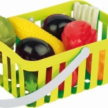 Gyermek bevásárlókosár műanyag zöldségekkel a valósághű boltos játékhoz. A csomag 10 darab zöldséget és egy praktikus kosarat tartalmaz. Biztonságos kivitel, ideális a 3 éves kortól a gyerekek fantáziájának és szociális készségeinek fejlesztéséhez.