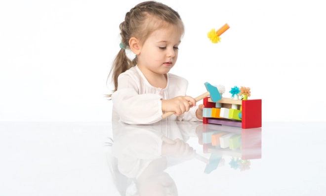 A kalapálás ideális tevékenység a kéz–szem koordináció gyakorlására és a fogás erősítésére. A játék támogatja a koncentrációt és az önállóságot biztonságos, szórakoztató játék közben.