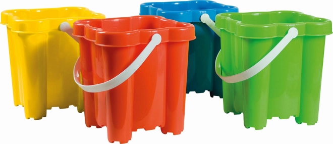 Nagy homokozó vödör vár formában, négy toronnyal, minőségi olasz műanyagból. Erős és rugalmas, repedésálló, és kiválóan alkalmas játszótérre vagy strandra. Könnyű hordozni, 12 hónapos kortól biztonságos, ideális a kis homokvár-építőknek.