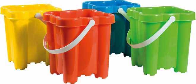 Nagy homokozó vödör vár alakban, 4 toronnyal a Androni márkától, amely már 12 hónapos kortól örömet szerez a kis építőknek. Minőségi, rugalmas és strapabíró műanyagból készült Olaszországban, így ellenáll a mindennapos játéknak a homokozóban és az óvodában is. Méretek: 18 × 18 cm, magasság 20 cm, súly 0,26 kg.