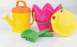 A legkisebbeknek szánt, tulipán motívumos homokozó készlet minden kis építőnek örömet szerez. 5 részből áll, és Olaszországban készült minőségi, erős, ugyanakkor rugalmas műanyagból. Tartós kivitelezésének köszönhetően óvodákba is alkalmas, és már 12 hónapos kortól biztonságosan használható.