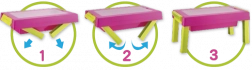 A könnyen szétnyitható asztalka játék közben stabil felületként szolgál, a játék végeztével pedig praktikus dobozzá alakul, amelyben elfér az összes tartozék.