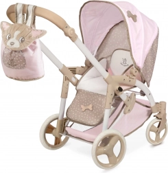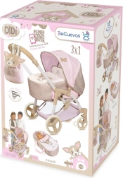 Stílusos 3 az 1-ben babakocsi babáknak a bájos DIDI kiskutyás kollekcióból, amely minden kis anyukát elbűvöl. Kínál állítható fekvőrészt és sportülést, hordozó táskát aranyos hímzéssel, magasságban állítható tolókart akár 80 cm-ig és forgó első kerekeket a könnyű irányításhoz. A praktikus nagy kosár, a hárompontos öv és a minőségi spanyol kivitel fém, műanyag és textil anyagokból biztonságos és vidám játékot garantál.