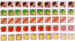 Gyümölcs- és zöldségképes kártyák fejlesztik a vizuális észlelést, a szókincset, valamint támogatják a párosítást és a kategorizálást.
