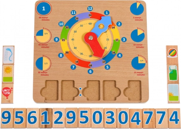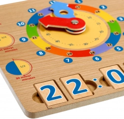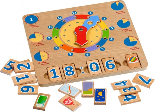 A Tanuljuk az órát fa játéktábla kiváló didaktikai eszköz, amely támogatja a természetes, játékon keresztüli tanulást. A nagy, színes mutatók és a jól elkülönített időszegmensek megkönnyítik a gyerekek számára az órák, percek és a napi tevékenységek konkrét időpontokhoz kötésének megértését.