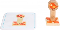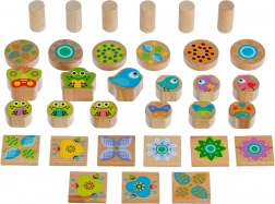 Minőségi fa, sima felület és lekerekített élek – ideális a kis kezeknek. Az állatfigurás, színes motívumok segítik az alak- és színfelismerést.