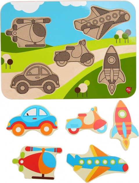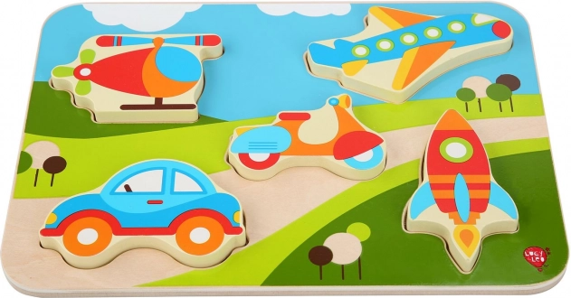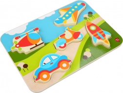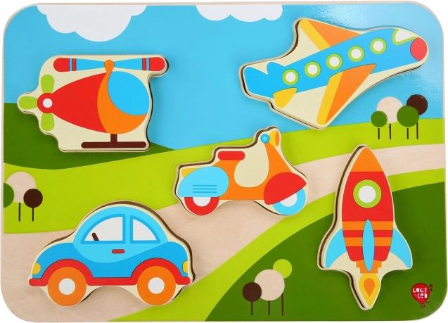Fedezze fel a szórakoztató fa puzzle-t járműves motívummal, amely fejleszti a finommotorikát, a kéz–szem koordinációt és az alakfelismerést. A nagy, színes elemeket a gyerekek könnyen megfogják, és egyszerűen a megfelelő kivágásokba illesztik. Ideális első puzzle az autók, repülők és más közlekedési eszközök kis rajongóinak.