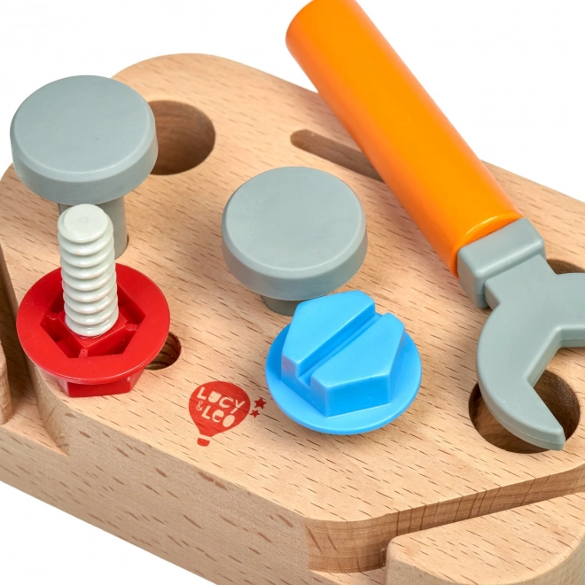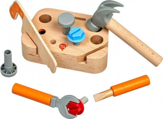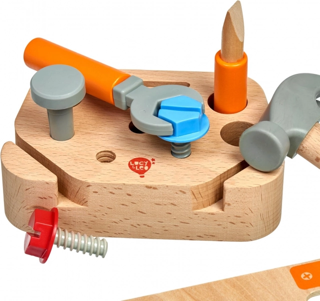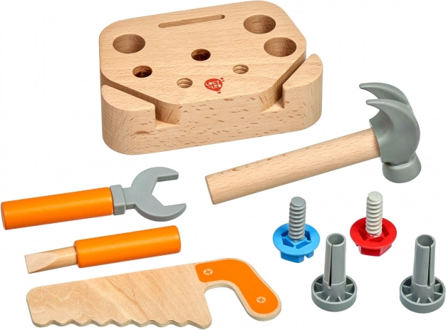 Fedezd fel a kézművesség kreatív világát a Lucy & Leo „Kis asztalos” gyerek szerszámkészlettel. Ez a minőségi, 9 darabos fa készlet állvánnyal és alapvető eszközökkel – fűrész, kalapács, csavarkulcs és csavarhúzó – valamint csavarokkal és szegekkel. A játék biztonságos fából és műanyagból készült, sima felületkezeléssel, és kiválóan fejleszti a finommotorikát, a szem–kéz koordinációt és a kreatív gondolkodást.