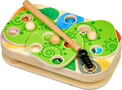 Ez a minőségi fa játék számtalan játékszcenáriót kínál – az egyszerű színszerint válogatástól a számok és formák szerinti fogásig. A gyerekek gyakorolják a figyelmet, a türelmet és a fogást, miközben a mágneses pálca minden próbálkozást izgalmas kihívássá tesz.
