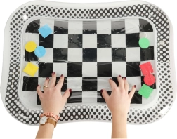 Fedezze fel a kontrasztos vizes szőnyeget, amely nemcsak gyermeke figyelmét kelti fel, hanem támogatóan hat érzékszervi és motoros fejlődésükre is. A fekete-fehér sakktáblas mintájú szőnyeg színes, úszó geometriai formákat tartalmaz, amelyek mozgásba lépnek, amikor a gyermek megérinti őket.