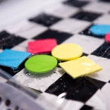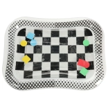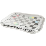 A szőnyeg fekete-fehér sakktábla mintával rendelkezik, amely természetesen felkelti a gyerekek figyelmét és segít serkenteni a látás érzékelését.