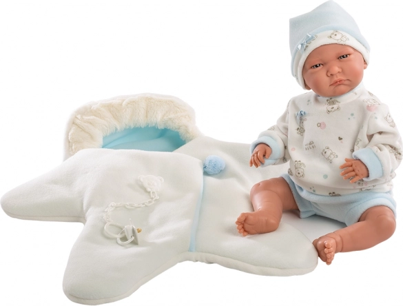 Kényeztesd babádat meghitt, bájos kialakítású ruhával. Ez a 3 részes készlet kétoldalas polár csillagoverált és harmonizáló kiegészítőket tartalmaz, amelyek együtt meleg és kényelmes öltözéket alkotnak minden „anyás” játékhoz. Az univerzális szabás a 40–42 cm-es NEW BORN babákhoz illeszkedik.