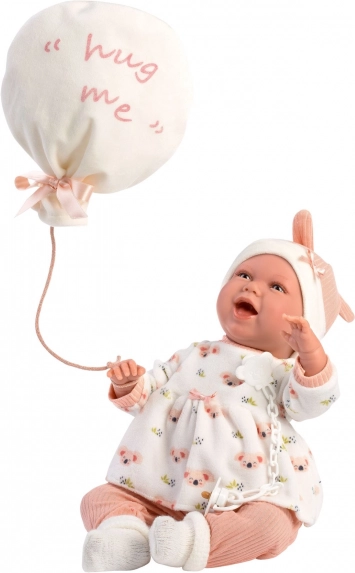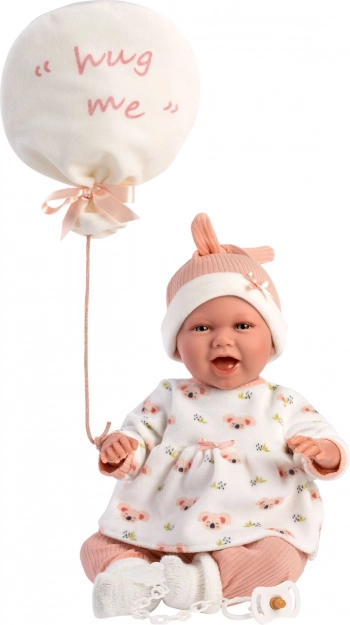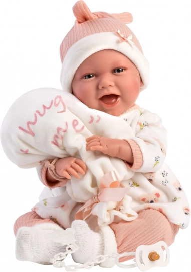 Stílusos, 4 részes ruhaszett NEW BORN babákhoz 40–42 cm méretben, finom pasztellszínekkel, meleg anyagokkal és egy aranyos, „hug me” feliratú ballon alakú ölelő plüssel. Tökéletes a kényelmes átöltöztetéshez, a valósághű gondoskodó szerepjátékhoz és ajándéknak babarajongó gyerekeknek. Spanyolországban készült, 3 éves kortól ajánlott.