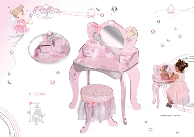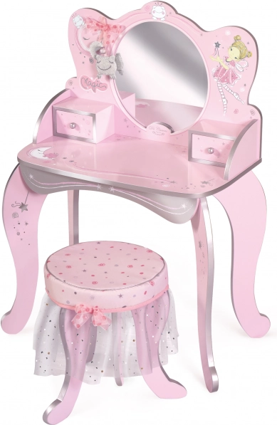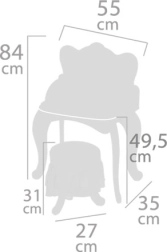 Ez a fa pipereasztal mesék inspirálta és ideális kiegészítője minden kislány szobájának. Gyönyörű nyomatokkal van díszítve, és tartalmaz:
