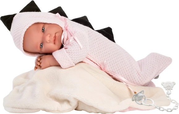 Dinoszaurusz stílusú baba ruha, ideális 3 éves kortól. Az újszülött babákhoz, 43-44 cm-es méretben készült, meleg és kényelmes környezetet biztosít a polár hálózsáknak köszönhetően.