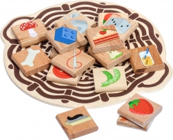 Ez az átgondolt montessori eszköz megtanítja a gyerekeket megkülönböztetni, mi ehető és mi nem. A fa alaplapokon egy tányér kanállal és egy fonott kosár látható, ahová a gyerekek a gyümölcsöket, zöldségeket, édességeket vagy italokat ábrázoló lapkákat, illetve kulcsokat, villanykörtéket, tűket vagy ceruzákat tesznek. A játék természetes módon fejleszti a világ megismerését, a koncentrációt és a kommunikációs készségeket.