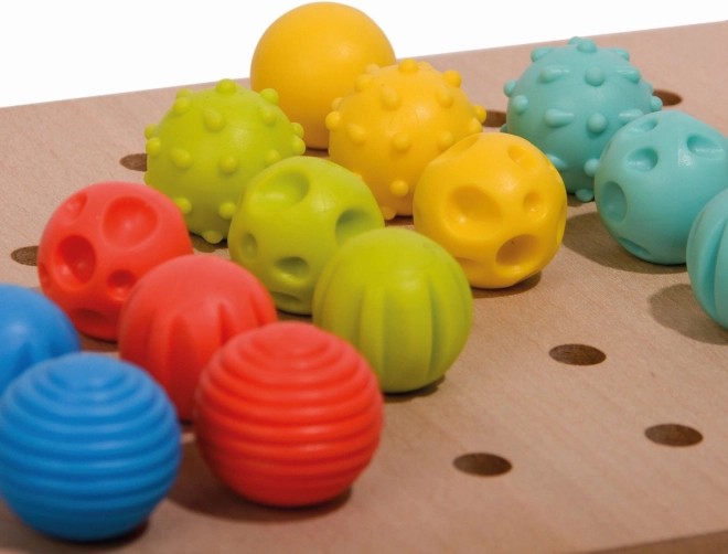 A szett 35 csapot tartalmaz eltérő felületi struktúrákkal, ideális a gyerekek szenzoros fejlődéséhez.