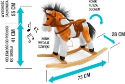 Ez a varázslatos hintaló puha, kiváló minőségű plüssből készült, ami kellemes tapintást biztosít. Kiemelkedő jellemzői a fa hintalécek és a masszív fa kapaszkodók, amelyek stabilitást és biztonságot nyújtanak játék közben. A ló nyereggel, kengyellel és kantárral van felszerelve, ami tovább fokozza a valódi lovaglás élményét.