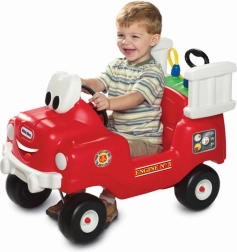 A gyerekek beülhetnek ebbe a piros, retró tűzoltóautóba, és élvezhetik a kreatív játékot. A kisautót a gyerekek lábai hajtják, vagy egy felnőtt is tolhatja, így a kisebbek számára is szórakoztató. A könnyen levehető, 9 literes tartálynak és a tömlőnek köszönhetően a víz mindig kéznél van a képzeletbeli tüzek oltásához.