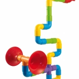 A Quercetti Saxoflute Super építőjátékkal a gyerekek saját hangszerüket építhetik meg, mint például szaxofonokat, fuvolákat, és trombitákat, színes műanyag csövekből és csatlakozókból. A készlet 24 részből áll, ami különféle kombinációkat és formákat tesz lehetővé. Ezáltal a játék nemcsak a kreatív gondolkodást, hanem a finommotorikus képességeket és a képzelőerőt is fejleszti.