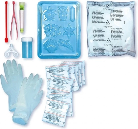 A csomag tartalma kémiai anyagokat és öntőformákat foglal magában különböző alakok létrehozásához, így kísérletezhet és látványos eredményeket érhet el. Ideális oktatási ajándékként és iskolai projektekhez.