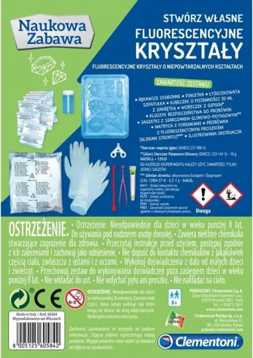 Tudományos készlet fluoreszkáló kristályok készítéséhez. Gipszet, formákat, alunitot és kálium-szulfátot tartalmaz. Egyszerű eljárás, nagyszerű eredmények. Olasz tervezés.