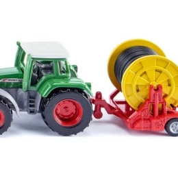 A SIKU Fendt traktor öntöző utánfutóval játék a zöldségbetakarítás ezen részének megvalósításához. A vizet szétoszlató permetező szállítás közben egy csigára van felakasztva. A szántóföldön a tömlő a csévélőről letekerhető, csatlakoztatható az öntözőhöz, és nagy területet öntöz. Az öntözés befejezése után a dobra vissza lehet tekerni a tömlőt, és a permetezőt fel lehet akasztani.