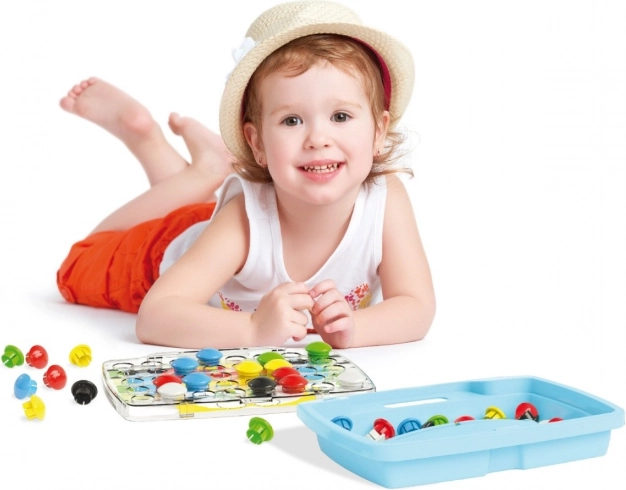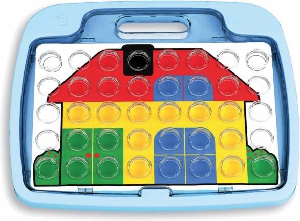 Quercetti Mozaika Pixel Junior egy oktatójáték, amely segíti a koordináció és a finommotorikus készségek fejlesztését. A készlet színpompás gombokat és átlátszó táblát tartalmaz, amelyre 8 különböző mintakártya segítségével lehet mintákat kirakni, amelyek a tábla alá helyezhetőek.
