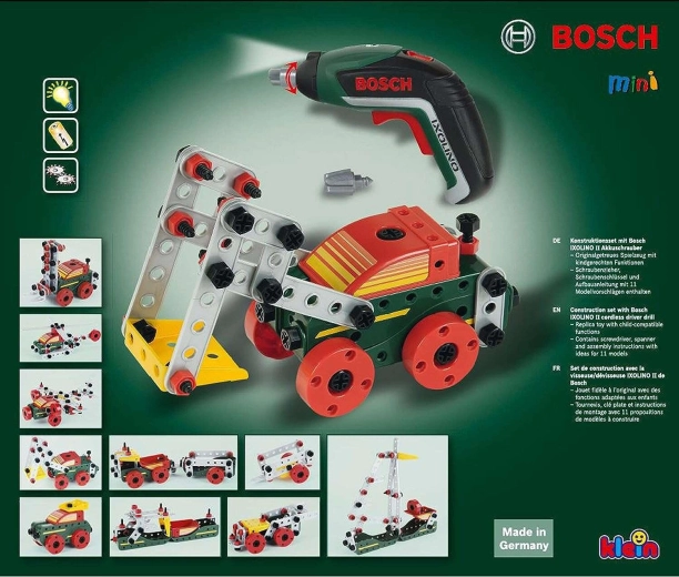 Ez a gazdagon felszerelt készlet a kreatív építést ötvözi a valódi szerszámokkal való játék élményével. A gyerekek a BOSCH Ixolino gyerek akkus csavarozóval csavarokat hajthatnak be, elemeket kapcsolhatnak össze, saját szerkezeteket építhetnek, vagy követhetik a mellékelt útmutatókat 11 járműmodellhez.