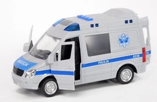 Városi autó – rendőrautóNyitható ajtókkal rendelkező jármű. 1:16 méretarányban készül, és fény- valamint hangeffekteket tartalmaz.
