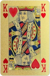 A kártyák hagyományos szimbólumokat és alakokat tartalmaznak, mint például a szívek királya és a vonzó pikk ász, mindegyik egyedi arany dizájnnal díszítve.