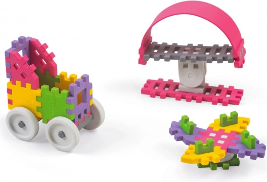 Fedezze fel a kreatív Mini Waffle 35 db-os építőkészletet lányoknak, puha és biztonságos anyagból, amely kellemes tapintású. Az elemek könnyen hajlíthatók, csendes játékot biztosítanak, és kisebb méretüknek köszönhetően kis helyen is építhet velük.