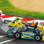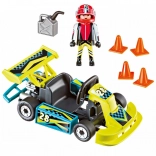 A készlet tartalmaz go-kartot, versenyző figurát, bójákat és kannát – ideális gyakorlómenetekhez és adrenalinban gazdag futamokhoz.
