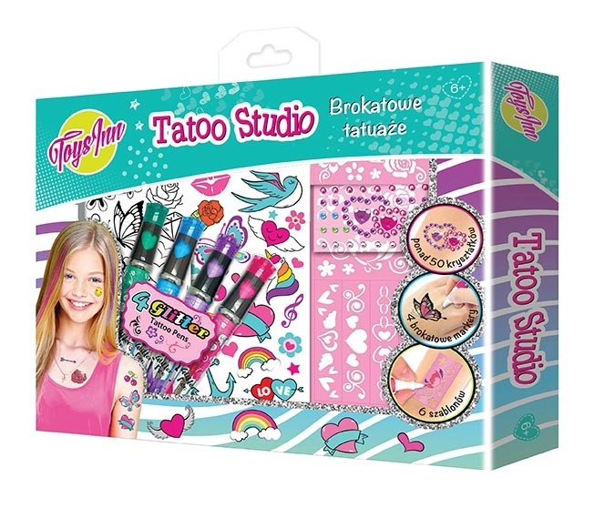 Fedezze fel a kreatív, ideiglenes tetoválásokhoz készült készletet, amellyel a gyerekek könnyedén megalkothatják saját, egyedi motívumaikat. A csomagban találhatóak csillámos filctollak, sablonok, öntapadó strasszkövek és dekoratív matricák az egyszerű díszítéshez. Egyszerű felvitel, élénk színek és ragyogó hatás támogatják a fantáziát és a finommotorikát.