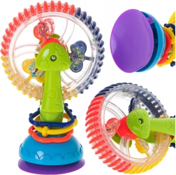 Ez az interaktív baba játék forgó elemeket, csörgő hatású golyókat és erős tapadókorongot kínál, amely a helyén tartja. A vidám színek és a forgó részek felkeltik a figyelmet, segítik a koncentrációt és a kéz–szem koordinációt.