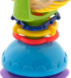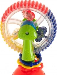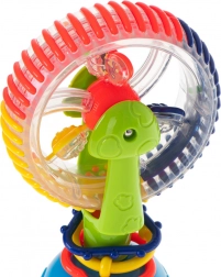Színes, vidám játék forgó formában, tapadókoronggal a stabil játékhoz asztalon vagy a kádban. Fejleszti a látási és tapintási érzékelést, segít a színek felismerésében, és a belül lévő golyók kellemesen csörögnek.