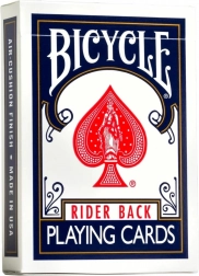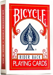A kultikus BICYCLE Rider Back Standard játékkártyák a világ leggyakrabban használt paklijai közé tartoznak. A minőségi papírnak és a speciális air-cushion felületnek köszönhetően kiválóan keverhetők, jól siklanak, és az intenzív használatot is bírják. Ideálisak családi kártyajátékokhoz, pókerhez, bridge-hez és bűvésztrükkökhöz.