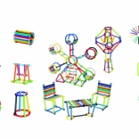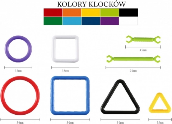 A 10 színben elérhető elemek sokfélesége lehetővé teszi fantasztikus figurák létrehozását, például biciklit, autót, nyugágyat vagy esernyőt.