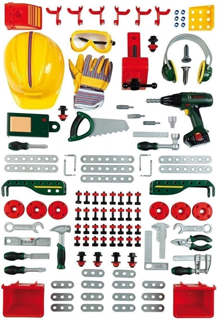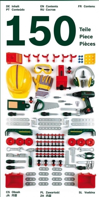 A komplett, gyermekeknek szóló BOSCH munkapad 150 darabbal valósághű szerszámokat és tartozékokat kínál a kis barkácsolóknak. Tartalmaz akkus csavarhúzót, fűrészt, kalapácsot, kulcsokat, fogót, csavarokat és anyákat, valamint egy masszív állványt lyukacsos fallal az áttekinthető tároláshoz. A minőségi műanyag tartósságot biztosít, a játék pedig kreativitást és finommotorikát fejleszt, hosszú órákon át tartó szórakozást nyújtva.
