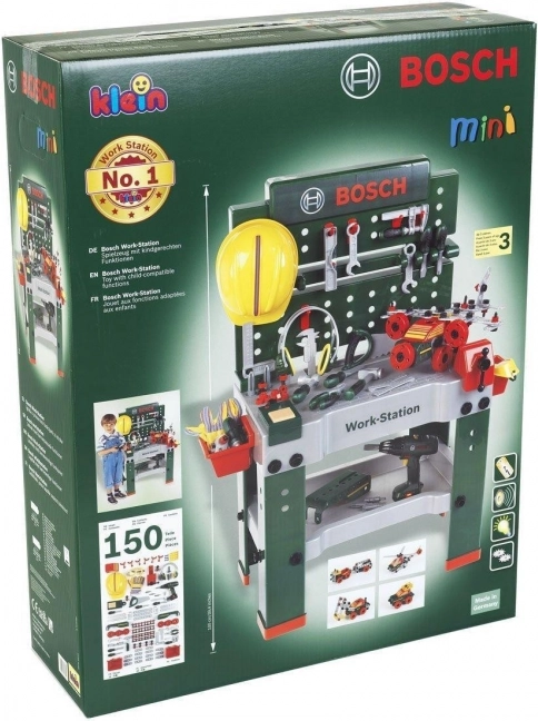 Szerezz örömet a gyerekeknek a valósághű BOSCH munkapaddal, amely hűen utánozza a valódi műhelyfelszerelést. A gazdag, 150 elemből álló készlet révén a gyerekek kipróbálhatják az alapvető „kézműves” tevékenységeket, a válogatást, csavarozást és építést, miközben fejlődik a képzelőerejük és készségeik.