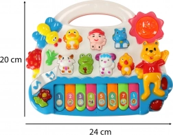 A bájos zongora vidám állatfigurákkal már az első pillanattól leköti a kicsik figyelmét. A választott módtól függően skálát, dallamokat vagy állathangokat játszik le. A billentyűk megnyomásakor felvillan a napocska, ami további interakcióra és felfedezésre ösztönöz.
